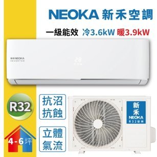 NEOKA新禾 4-6坪 1級變頻冷暖冷氣 NA-K36VH/NA-A36VH R32冷媒 限時賣場