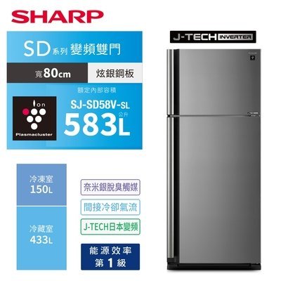 SHARP夏普583L自動除菌離子變頻雙門電冰箱(炫銀鋼板)SJ-SD58V-SL電費試算